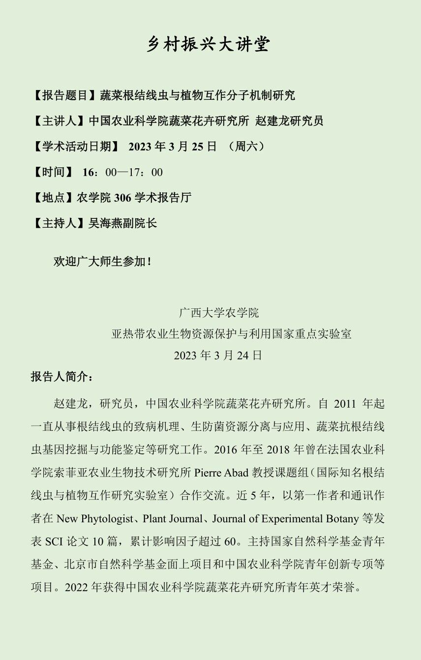 乡村振兴大讲堂:蔬菜根结线虫与植物互作分子机制研究
