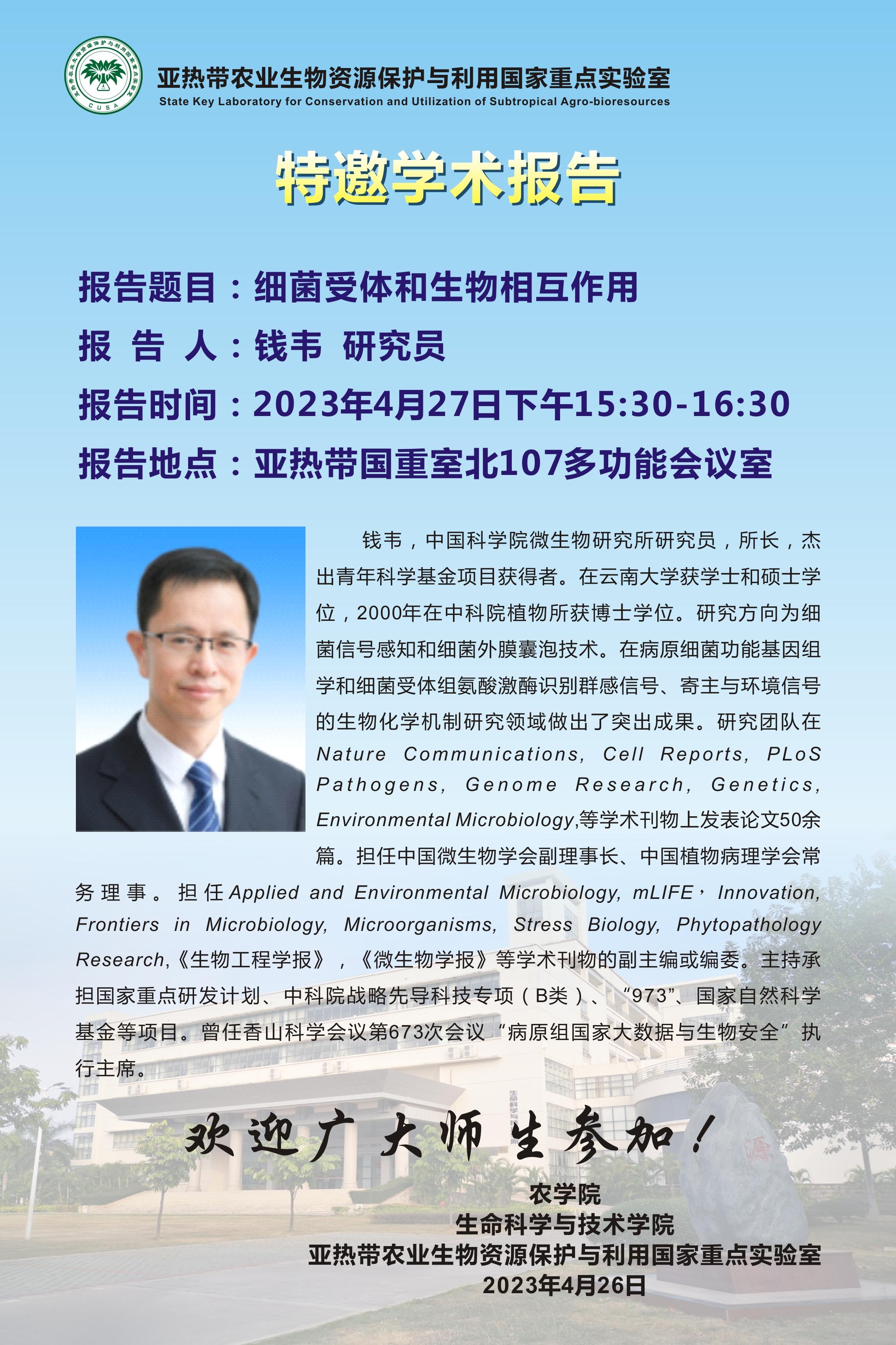 生命科学君武讲坛(第八期):激素调控植物分枝和抗性反应的机制研究