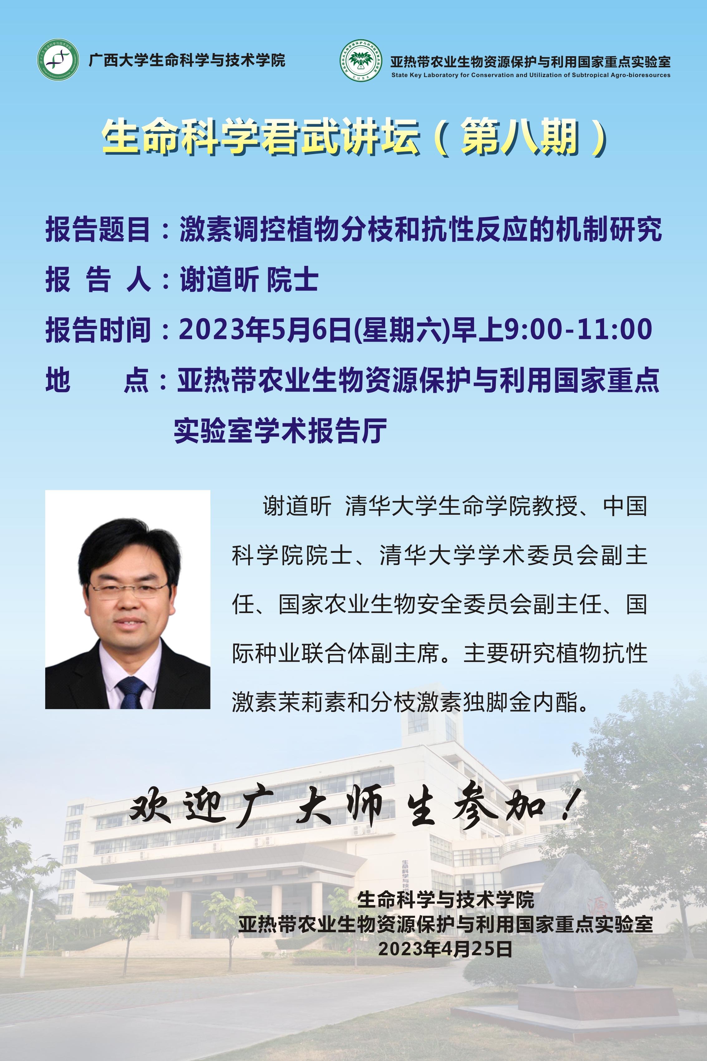 生命科学君武讲坛(第八期):激素调控植物分枝和抗性反应的机制研究