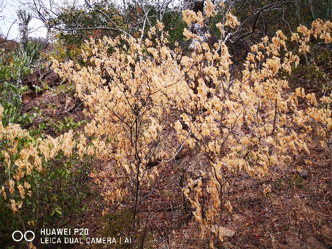 我国西南地区由于高山引起的雨影效应和冬半年干暖的环流西风南支槽的影响,河谷地区气候干热,发育特有的“河谷型萨王纳植被”,主要分布在怒江、澜沧江、元江和金沙江的部分河谷地段,植物具有典型旱生特征。在干热河谷共存着不同的生活型和落叶习性的木本植物,为研究不同类群植物对于干旱的响应提供了良好的场所。在2015年包括我国在内的整个东南亚经历了一次强的厄尔尼诺带来的极端干旱事件,本次干旱过程中,干热河谷许多植物末梢枯死和地上部分死亡。利用这次极端干旱事件,中科院西双版纳热带植物园,太阳集团2007“亚热带农业生物资源保护与利用国家重点实验室”等机构科研人员选择了元江干热河谷40种常见的木本植物,前后三年持续监测了干旱不同阶段植物的生理功能变化、旱灾后个体的末梢枯死和地上部分死亡情况,同时,系统研究了这些植物枝条和叶片的水力性状,重点探讨了不同类群干热河谷植物的水力性状差别以及与植物在极端干旱时期植物的响应表现。结果表明,元江干热河谷植物在叶片和枝条水平均表现出很强的耐旱能力,但种间差异极大,植物叶片的落叶习性(常绿,旱季前期落叶和半落叶)而非生活型(藤本、乔木、灌木)主要驱动植物枝条和叶片水力特征的适应,相同落叶习性的不同生物型的植物多表现出驱同的适应特征。半落叶植物、灌木种类相比其他类群具有更高的枝条枯死和地上部死亡率。研究指出水力性状可以较好地预测植物在极端干旱中的表现,预测要考虑落叶习性和生活型的影响。