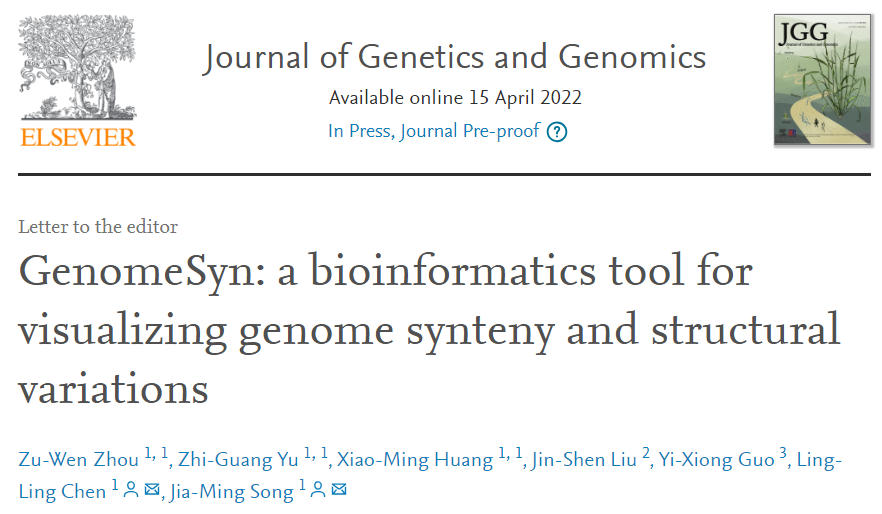 引用本文:Zu-Wen Zhou, Zhi-Guang Yu, Xiao-Ming Huang, Jin-Shen Liu, Yi-Xiong Guo, Ling-Ling Chen, Jia-Ming Song. (2022). GenomeSyn: a bioinformatics tool for visualizing genome synteny and structural variations. Journal of Genetics and Genomics.