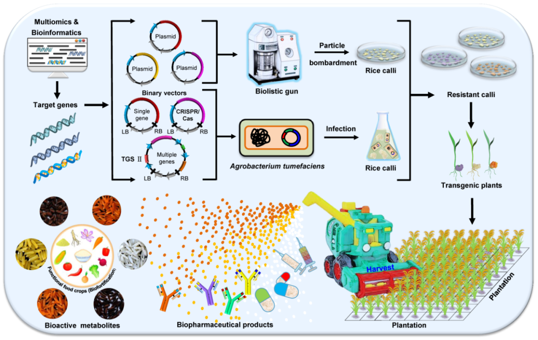 图1 通过基因工程在水稻胚乳中进行分子农场生产的流程