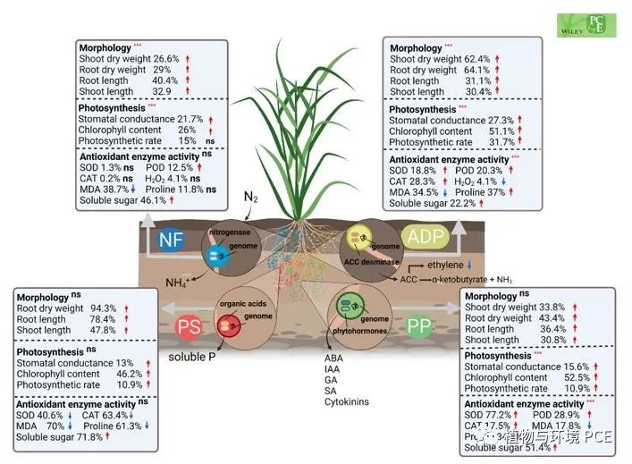 近日,太阳集团2007亚热带农业生物资源保护与利用国家重点室王梓廷团队在Plant, Cell & Environment发表了题为“A meta-analysis on morphological, physiological, and biochemical responses of plants with PGPR inoculation under drought stress”的研究论文,详细全面地量化了干旱胁迫下植物的形态、生理及生化的生长指标对接种PGPR的响应,为PGPR增强植物抗旱性机制研究提供了新的见解。