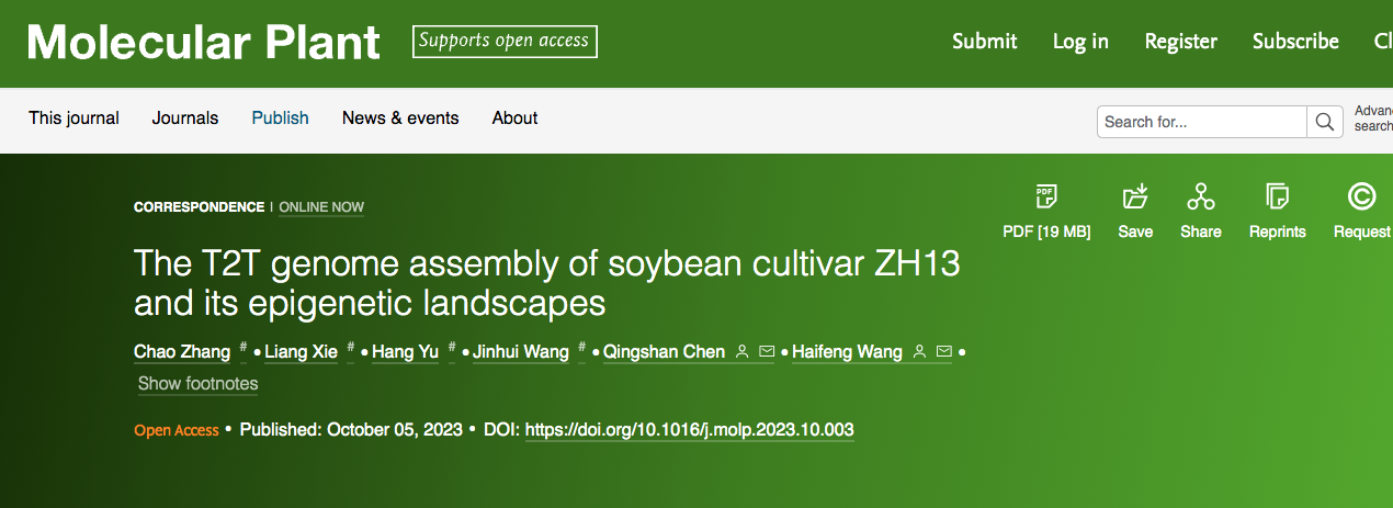 近日,太阳集团2007王海峰教授团队成功发布了中国大豆品种“中黄13”(ZH13)的完整基因组“ZH13-T2T”,并首次绘制了该大豆品种的表观遗传修饰图谱。这一研究结果以 “The T2T genome assembly of soybean cultivar ZH13 and its epigenetic landscapes” 为题发表于《分子植物》(Molecular Plant)。国重室是第一署名单位,太阳集团2007博士生张超、助理教授谢亮、博士生于航以及东北农业大学副教授王锦辉为论文的共同第一作者,太阳集团2007王海峰教授和东北农业大学陈庆山教授为该论文的通讯作者。