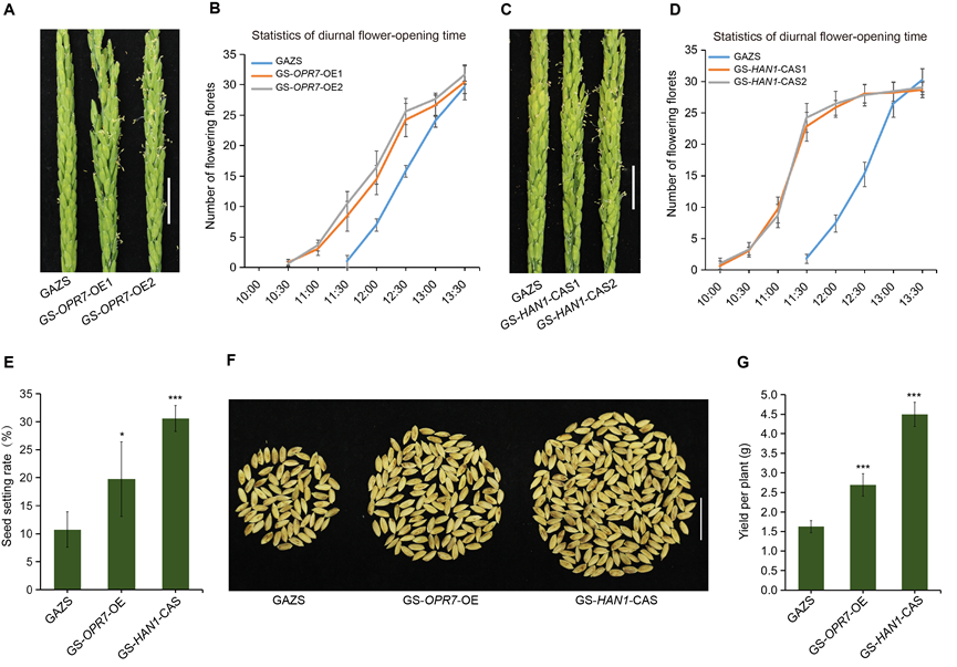 过表达OsOPR7和敲除OsHAN1显著提高籼粳杂交制种产量