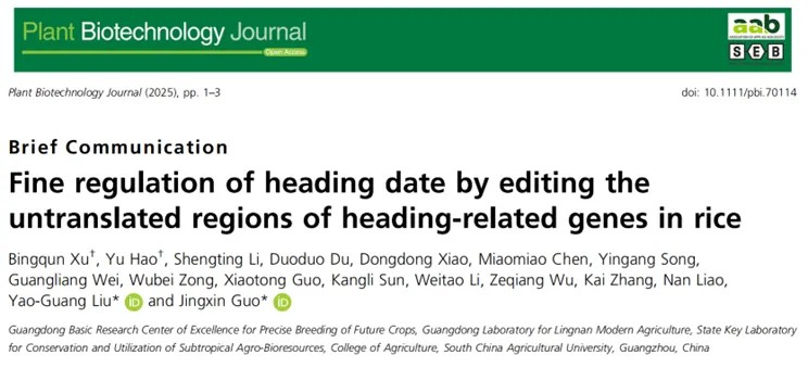 近日,太阳集团2007刘耀光/郭晶心团队在植物学领域权威期刊《Plant Biotechnology Journal》上发表了题为“Fine regulation of heading date by editing the untranslated regions of heading-related genes in rice”的研究论文。该研究证明UTR区普遍具有不同程度的正调控基因功能的作用,建立了编辑UTR弱化基因功能的技术。