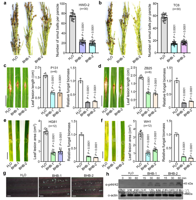 图1. 外源β-羟基丁酸处理增强水稻对病原菌的抗性