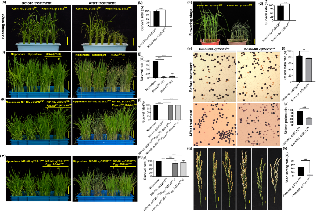 Fig. 3 RGA4L confers strong chilling tolerance without yield penalty in rice.