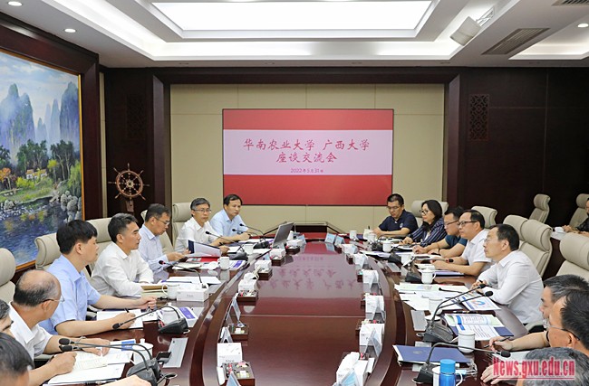 副校长罗廷荣、马少健、冯家勋,两校党政办公室、党委宣传部、科学研究院/科技处、国际交流处、校友会、乡村振兴研究院、农学院、林学院、动物科学技术学院和国家重点实验室等单位负责人及实验室骨干成员参加座谈。
