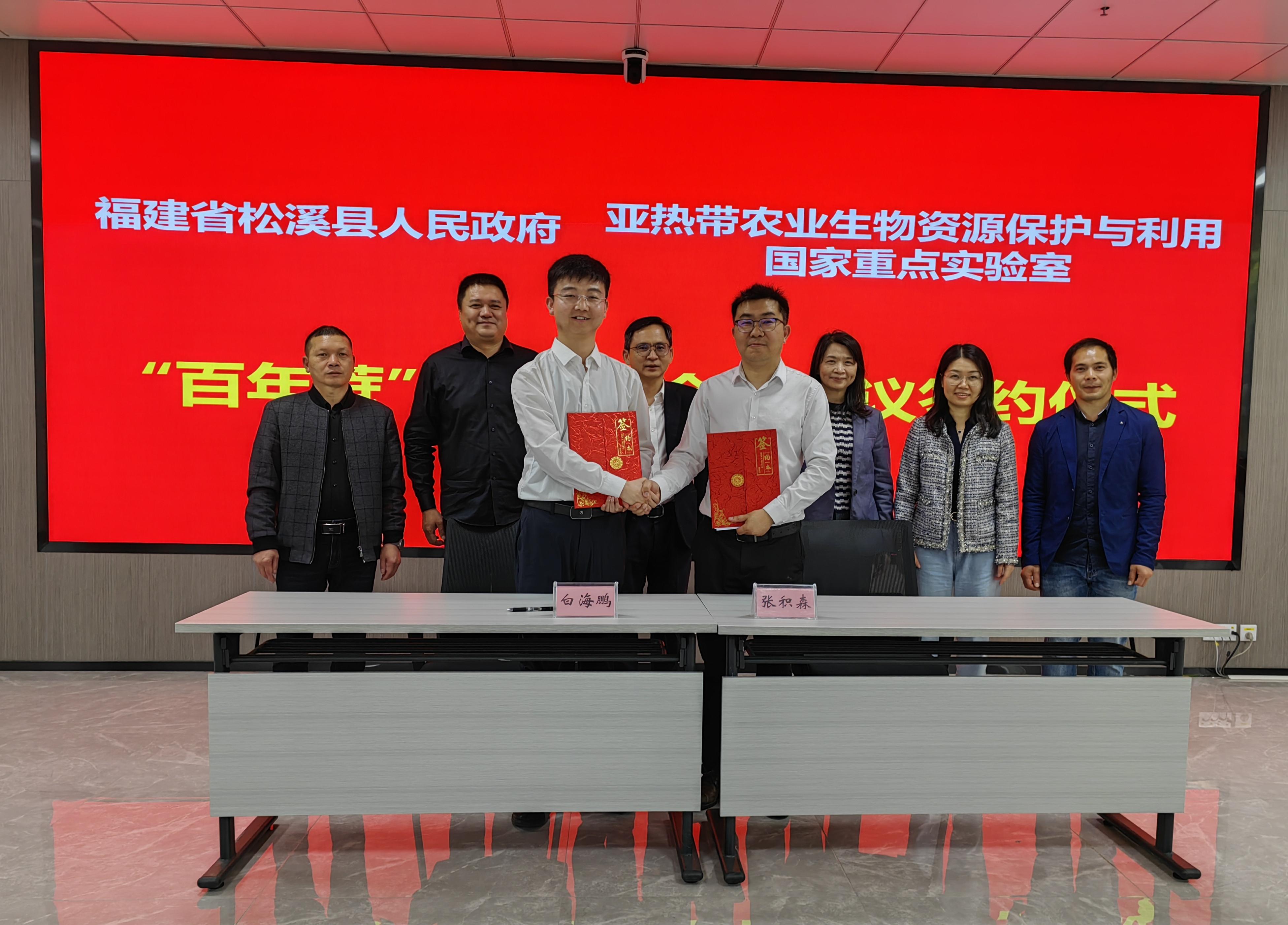 为学习贯彻党的二十大精神,科技创新助力乡村振兴战略号召,3月6日下午,太阳集团2007亚热带农业生物资源保护与利用国家重点实验室与福建省松溪县人民政府举行深化合作座谈会暨签约仪式。实验室主任张积森与松溪县人民政府副县长白海鹏分别代表双方签署产学研战略合作框架协议。