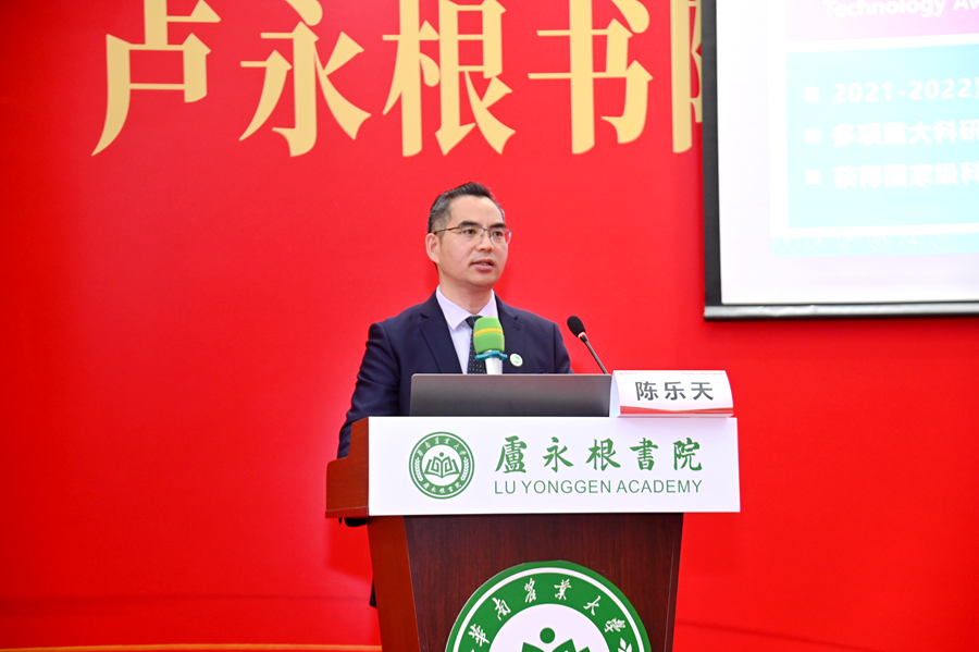 “国家的未来在青年,而华农正是青年成长的一方沃土,在这里有大师、有大楼,也有大的项目、大的成果。希望同学们能珍惜在校时光,利用学校资源,在奋斗中实现人生梦想。”结合自身成长经历,陈乐天向同学们阐释了为什么要做科研、如何做好科研、如何成长成才等方面内容,并从过来人的角度向同学们提供了宝贵建议。