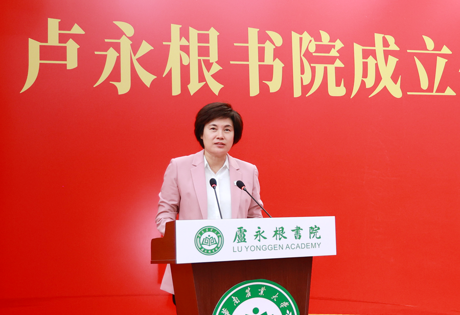 “三代院士,两脚泥巴,体现了胸怀‘国之大者’、扎根农业、报效祖国、奉献传承的宝贵精神!成立卢永根书院,是华农探索创新一流人才培养模式的重要举措,也是加快培养一流人才的时代答卷,具有很好的引领作用和导向意义。”吴华明代表省教育厅向卢永根书院的成立表示祝贺,并对书院建设提出三点要求:一是培根铸魂,推动“三全育人”与“五育并举”深度融合;二是强化优势互补,建立书院与专业院系协同联动机制;三是承袭中国古代书院的优良传统,构建导师学生共同体。她表示,华农在人才培养方面一直是广东的一面旗帜,希望学校继续贯彻落实党的二十大精神,领会习近平总书记关于“双一流”建设的重要指示批示精神,深化人才培养改革创新,取得更多佳绩。