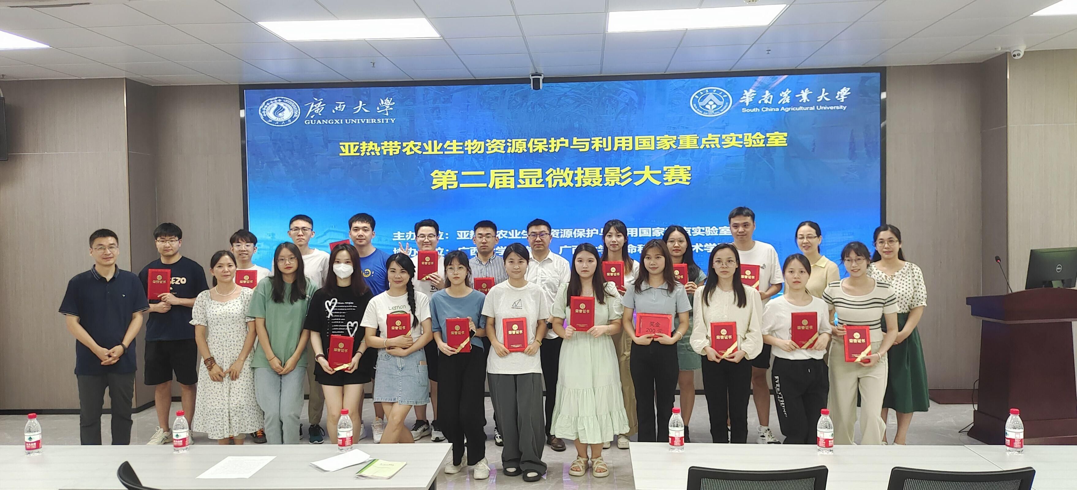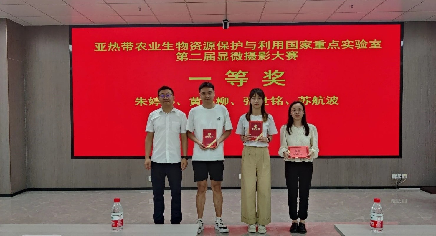 2023年6月5日上午,亚热带农业生物资源保护与利用国家重点实验室第二届显微摄影大赛在107多功能会议室举行了颁奖仪式。实验室主任张积森教授为获奖者颁奖,对大家积极参与活动表示感谢,并鼓励同学们继续在科研活动中培养创新意识和人文素养,在未来的科研道路上再创佳绩。