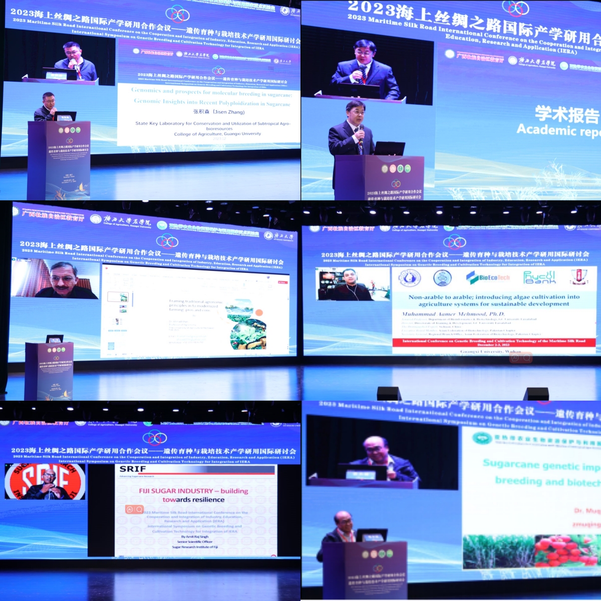 本次会议通过线上线下的方式进行,立足服务“一带一路”倡议和中国-东盟命运共同体建设,聚焦作物遗传育种与栽培技术,围绕“甘蔗育种前沿技术与种质创新”“作物生物育种”“作物现代优质安全高效栽培”三个议题开展研讨。来自美国、巴基斯坦、印度尼西亚、斐济、澳大利亚、中国科学院微生物研究所、中国农业科学院农业基因组研究所、浙江大学、四川农业大学和贵州大学等海内外高校科研院所的26位海内外专家学者,围绕分子辅助育种、基因挖掘、甘蔗遗传改良、作物育种新技术开发、作物高效栽培模式等领域的最新研究成果、发展趋势等展开学术报告和交流,对重要性状基因发掘、作物新种质、新品种创制、糖料产业发展动态等重大问题提出创新性建议、前瞻性预测。