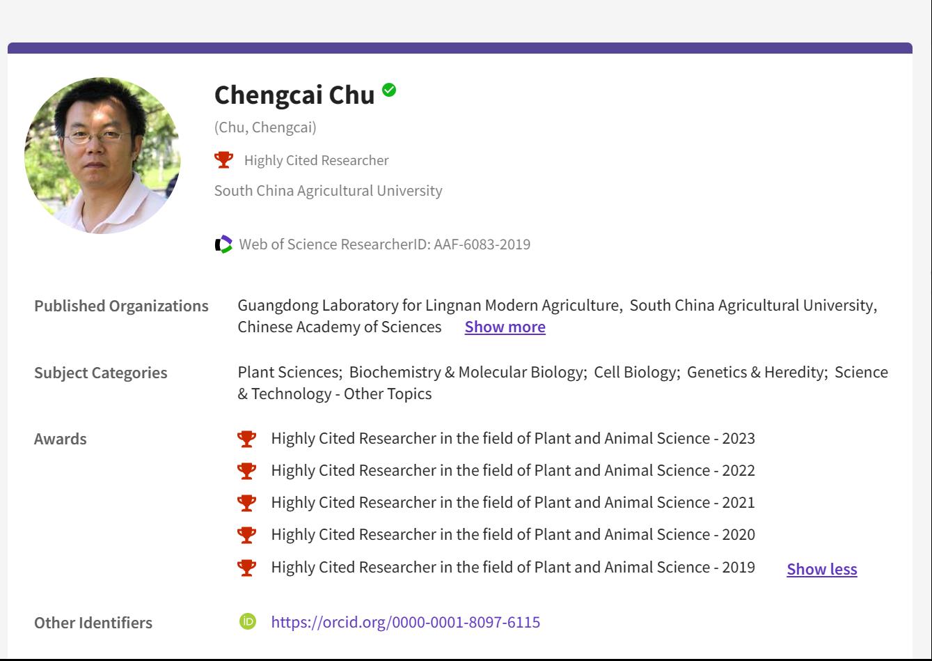 近日,科睿唯安发布了2023年度“全球高被引科学家”名单 (Highly Cited Researchers 2023)。太阳集团2007刘耀光院士、储成才教授、胡斌教授、刘林川教授4人入选。