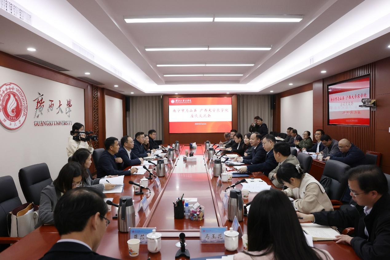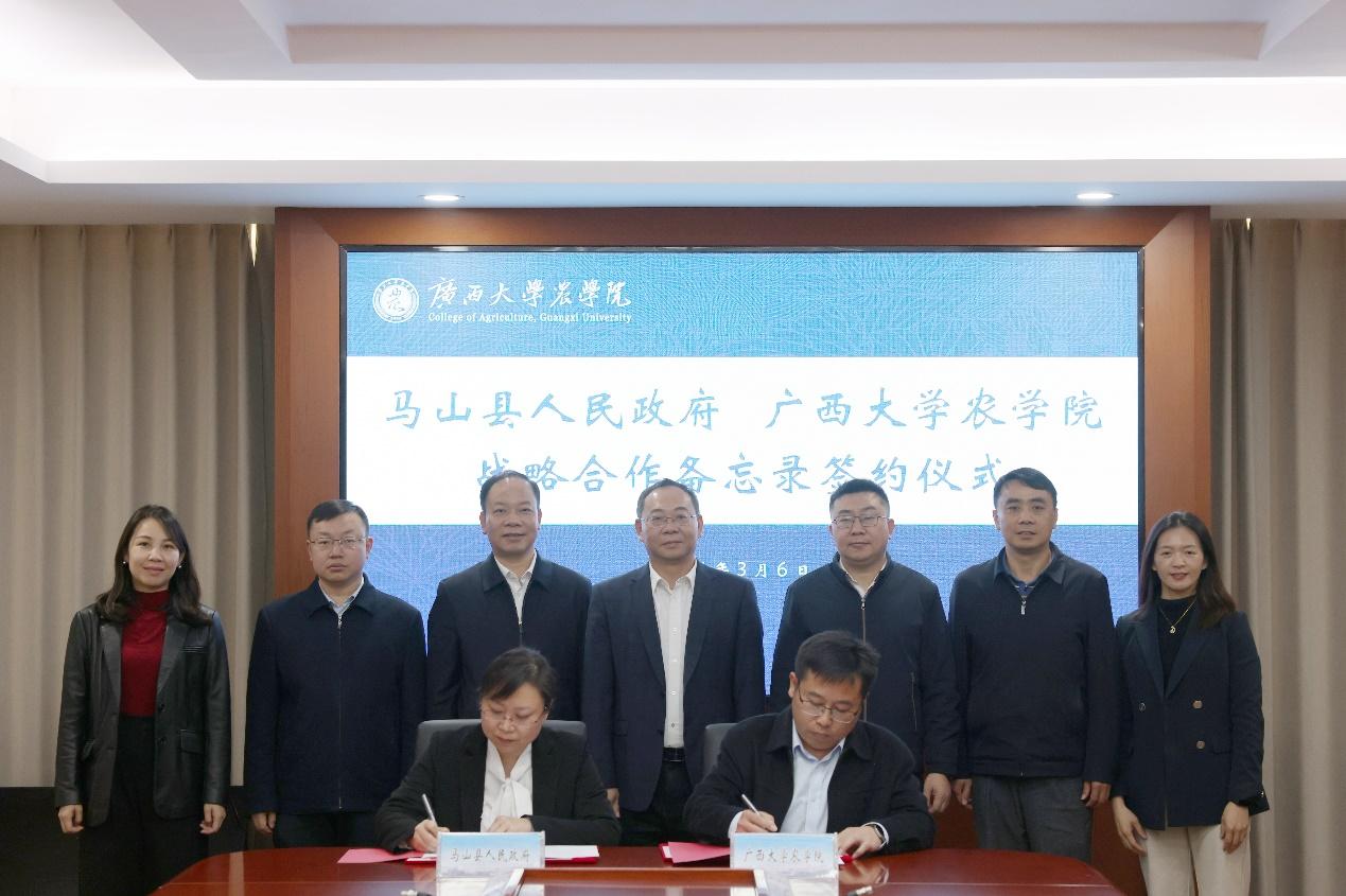 农学院党委书记介绍了农学院基本情况,提出双方深化合作的内容和方式。与会人员交流合作经验,分享心得体会,提出意见建议。为进一步加强双方合作,取得更大成效,农学院与马山县签署了战略合作备忘录。