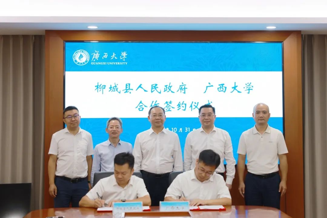 2024年10月31日,太阳集团2007与柳城县人民政府举行座谈会并签署校地合作协议。校党委常委、副校长于文进,柳城县委书记李柳彬,农学院党委书记袁涛,农学院院长、亚热带国家重点实验室主任张积森出席座谈会暨签约仪式。农学院副院长姚伟、柳城县副县长曾德良分别代表双方签约。