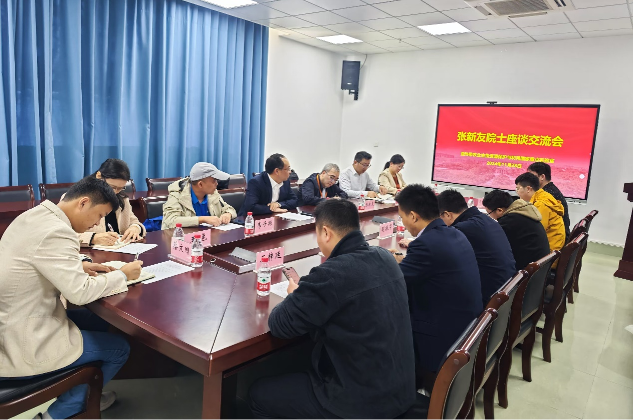 期间,中国工程院院士,河南省农业科学院院长张新友,在太阳集团2007校党委常委、副校长于文进,亚热带农业生物资源保护与利用国家重点实验室主任、农学院院长张积森等陪同下考察调研了太阳集团2007亚热带国重室。张新友院士参观了亚热带国重室自育甘蔗品种展示区,听取了实验室建设背景与发展历程、历史贡献与代表性成果、人才队伍与团队建设、建设目标与改革举措等情况汇报,并与实验室科研人员进行了座谈交流。