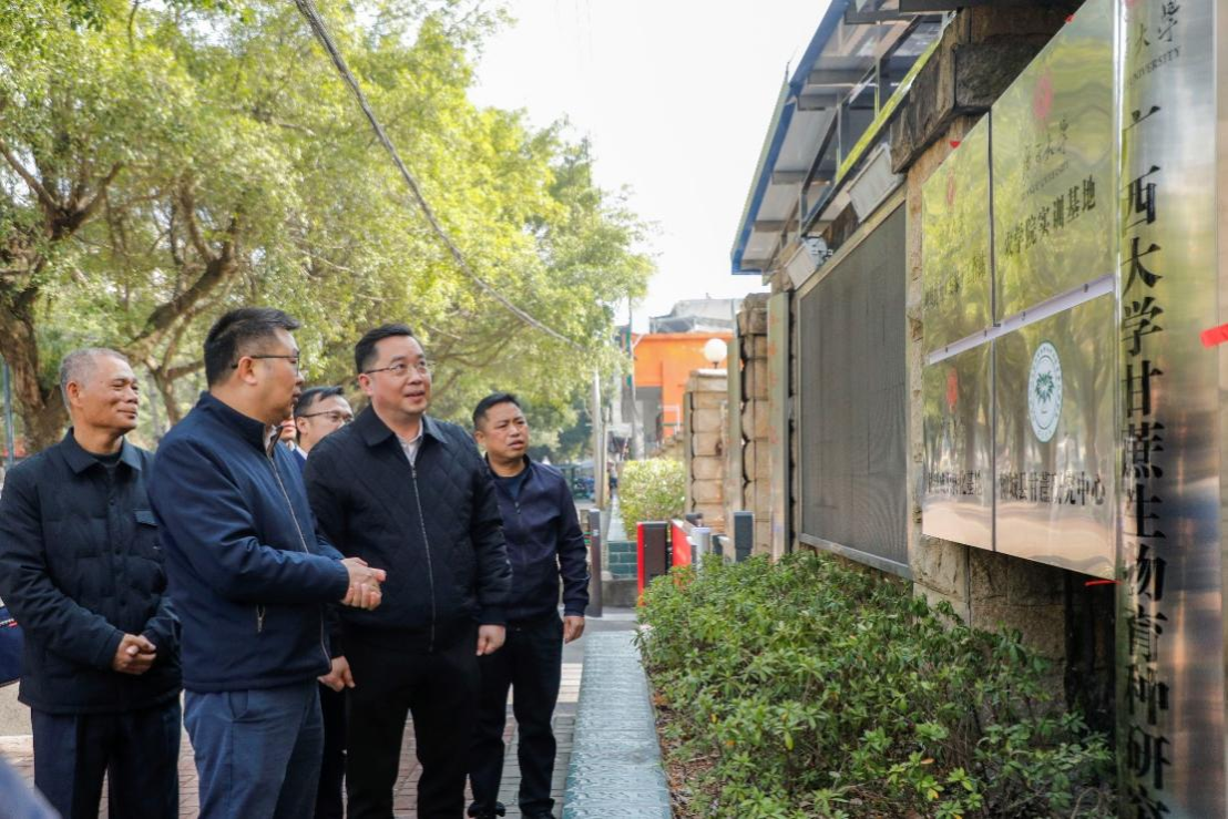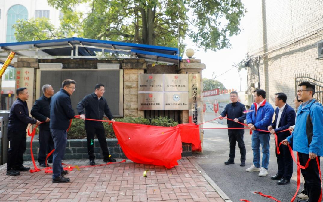 2024年12月24日上午,太阳集团2007甘蔗生物育种研究中心(柳城)揭牌仪式在柳城县举行,亚热带农业生物资源保护与利用国家重点实验室主任、农学院院长张积森,柳城县委书记李柳彬,县长何韬,农学院副院长姚伟、韦燕燕、邹承武等共同为中心揭牌。