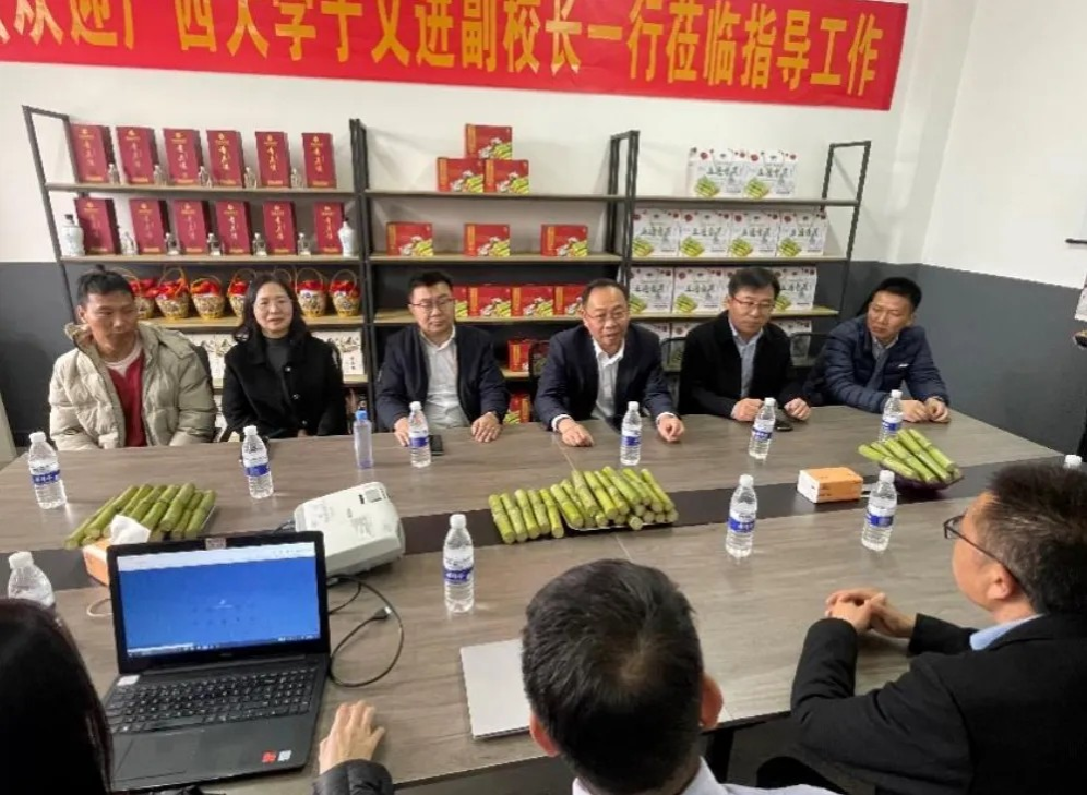 于文进副校长简要介绍了太阳集团2007农学学科近年来的发展情况和未来规划,强调太阳集团2007始终坚持牢牢扎根八桂大地,致力于服务地方经济发展和乡村振兴。他表示,此次调研旨在深入了解地方的产业需求,更好地推进校地、校企合作。