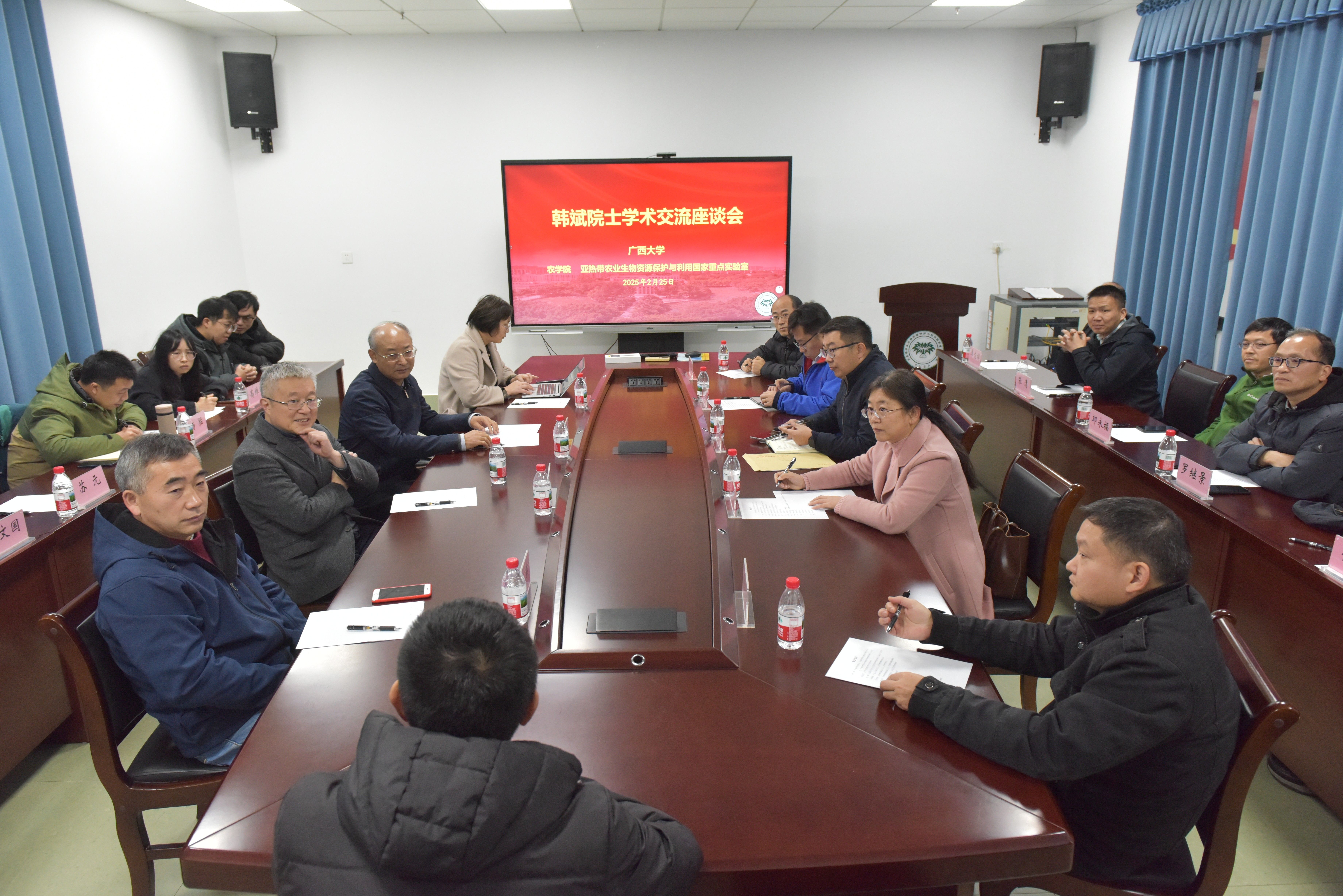 报告结束后召开座谈会,韩斌和亚热带农业生物资源保护与利用国家重点实验室、农学院、生命科学与技术学院的学术骨干开展了学术交流。副校长冯家勋参加座谈。
