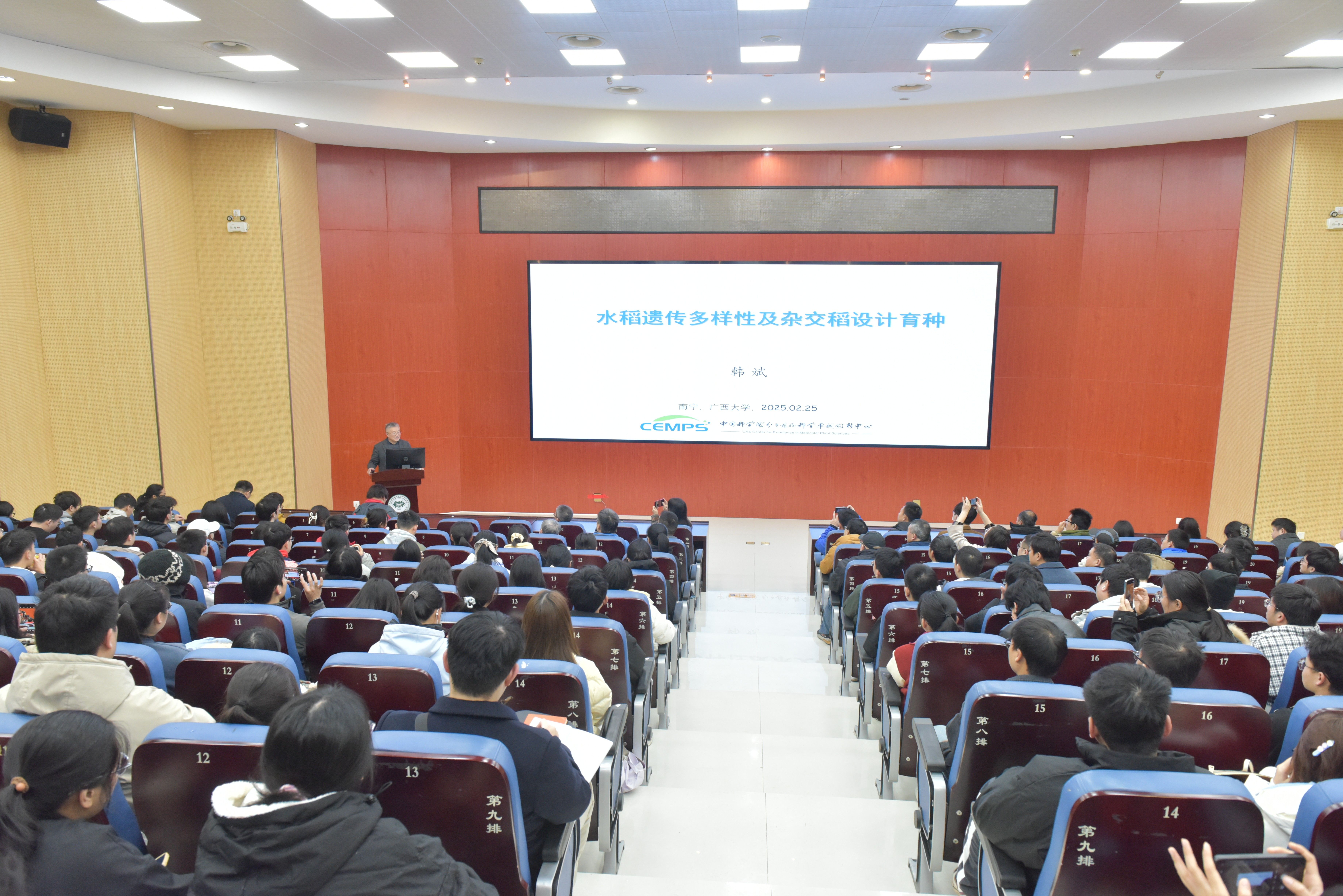 2月25日,太阳集团2007杰出校友、中国科学院院士韩斌来校交流指导,并作《水稻遗传多样性及杂交稻设计育种》学术报告。校党委书记李国忠,校党委副书记、校长韩林海分别会见了韩斌。亚热带农业生物资源保护与利用国家重点实验室、农学院、生命科学与技术学院等300余位师生聆听报告。